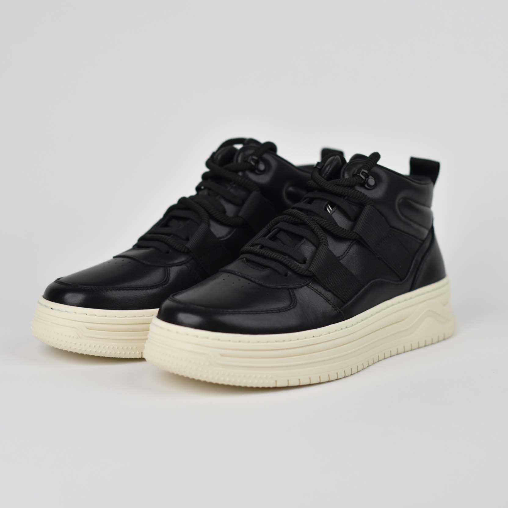 Këto atlete me qafë të mesme kombinojnë stilin modern me rehati të përditshme. Pjesa e sipërme me pamje lëkure ofron qëndrueshmëri dhe dukje elegante, ndërsa lidhëset e trasha sigurojnë përshtatje të fortë. Taban i trashë në ngjyrë bezhë garanton amortizim të mirë dhe ecje të rehatshme. Me dizajn praktik dhe sportiv, ato janë ideale për veshje casual dhe përdorim të përditshëm.