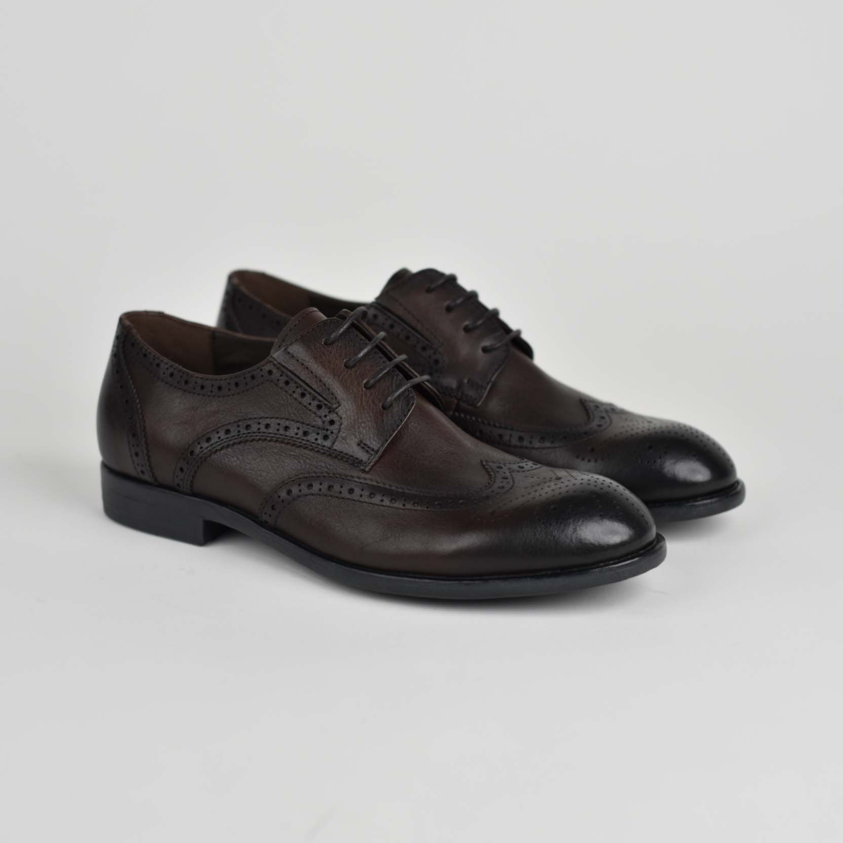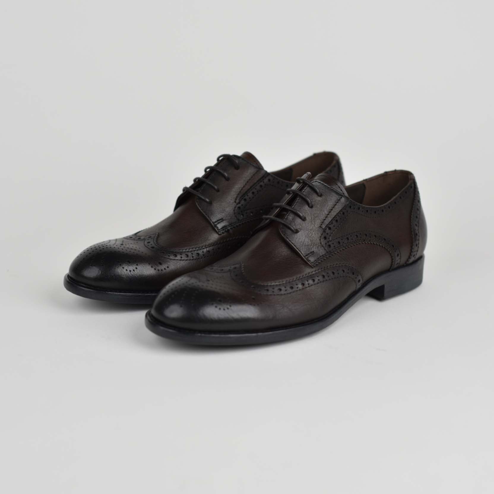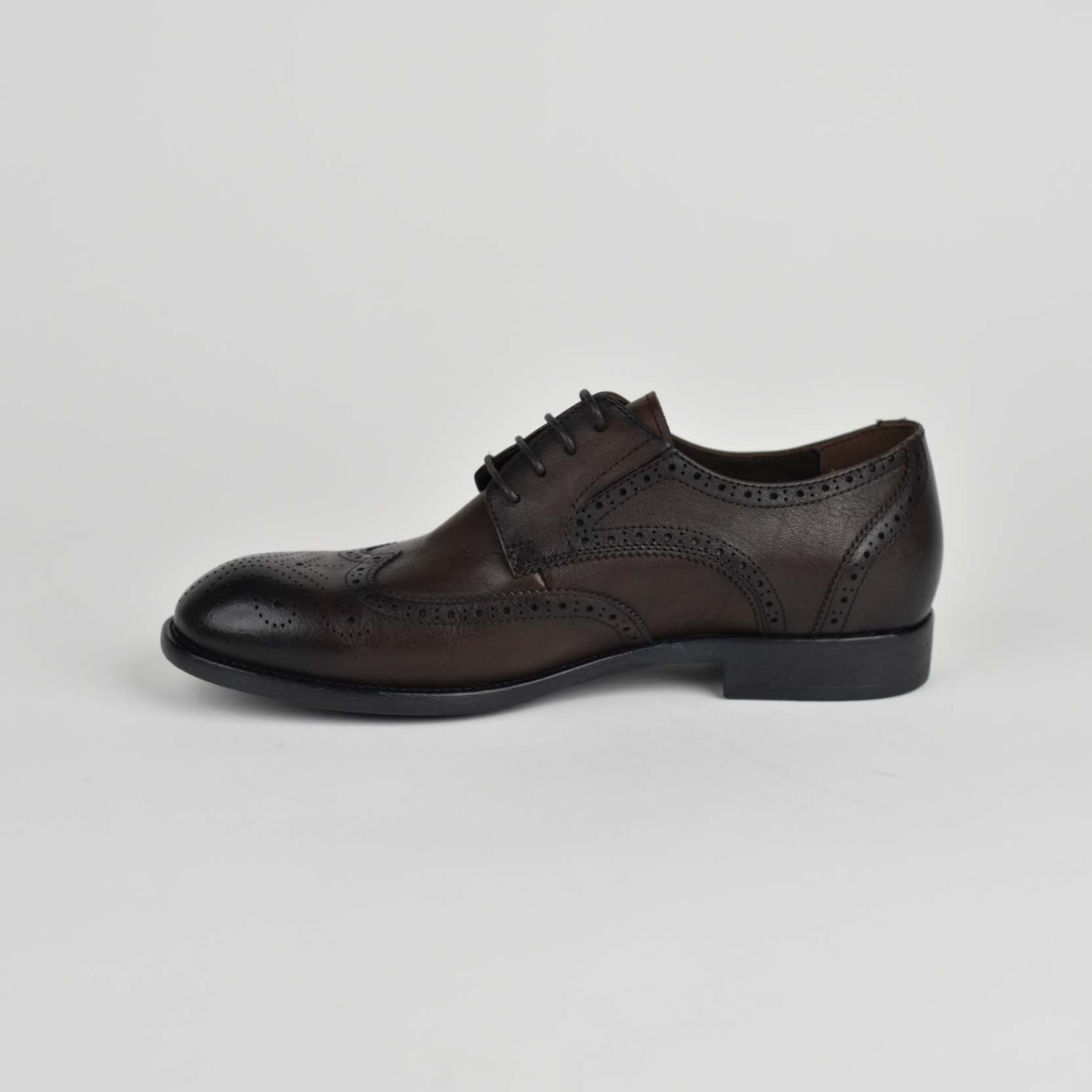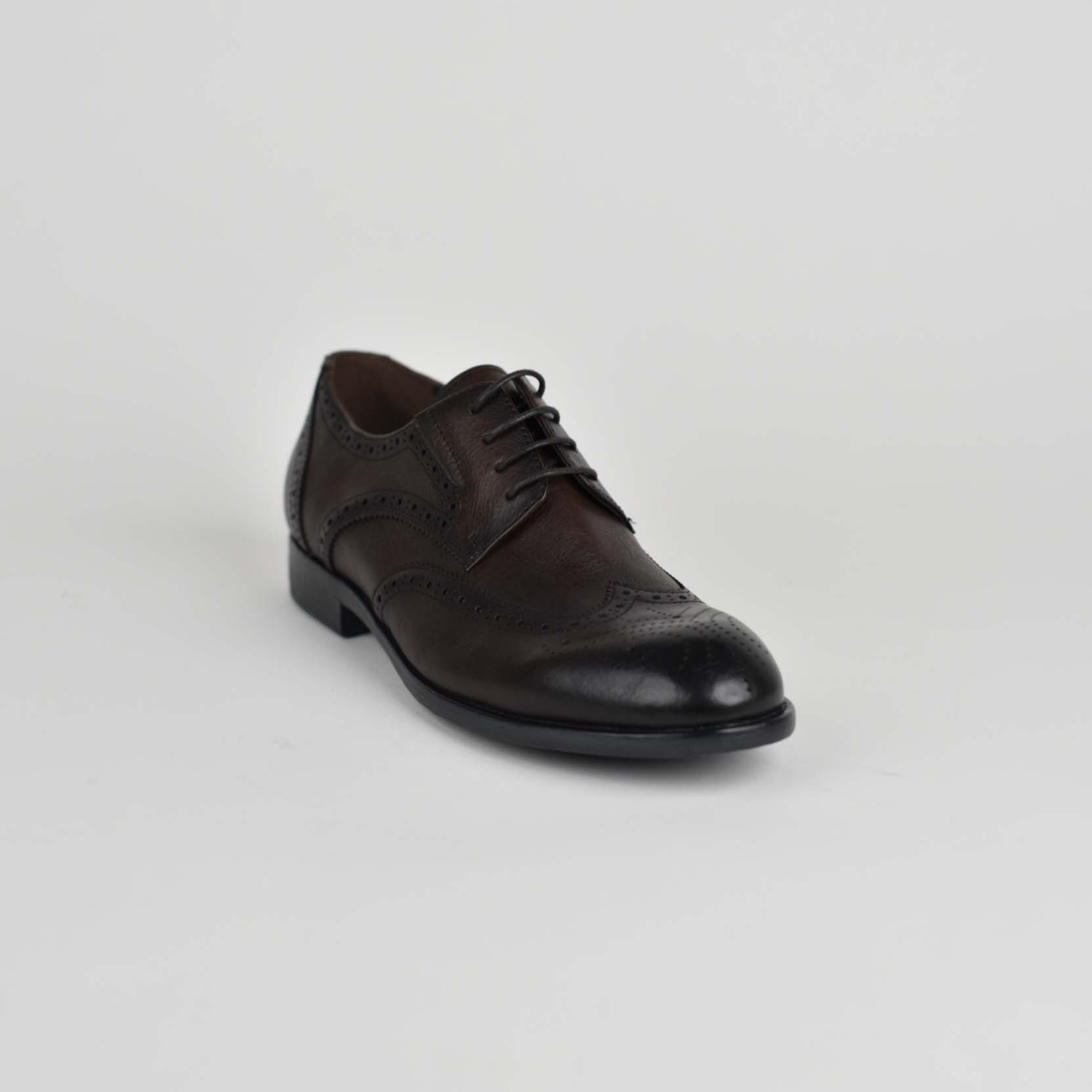 Këto këpucë elegante për meshkuj janë krijuar për ata që kërkojnë një kombinim të përsosmërisë klasike dhe komoditetit modern. Të punuara nga lëkurë natyrale cilësore, ato paraqiten me një ngjyrë kafe. Dizajni i tyre i thjeshtë, me lidhëse dhe formë të zgjatur, i jep një pamje profesionale ideale për veshje formale apo biznesi.