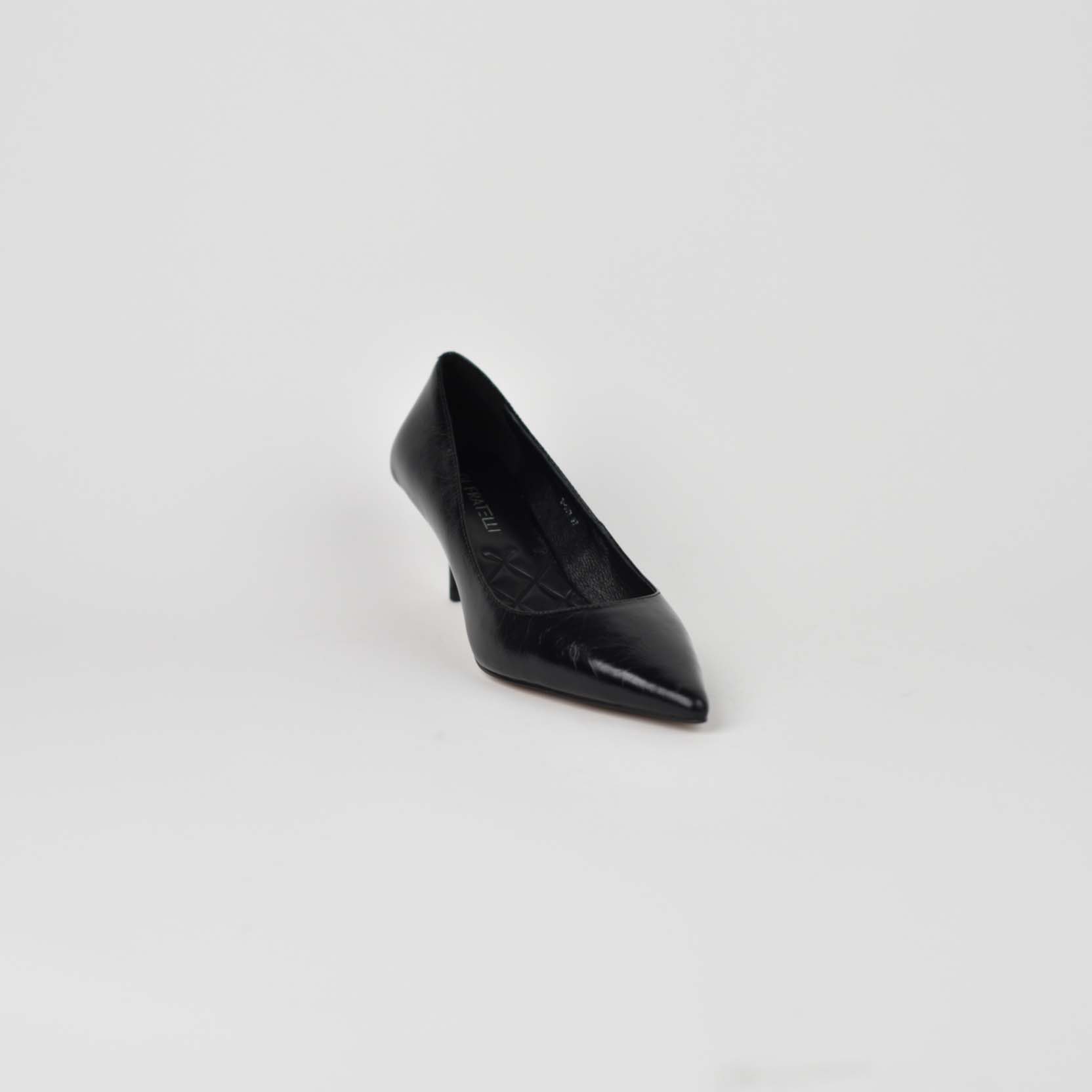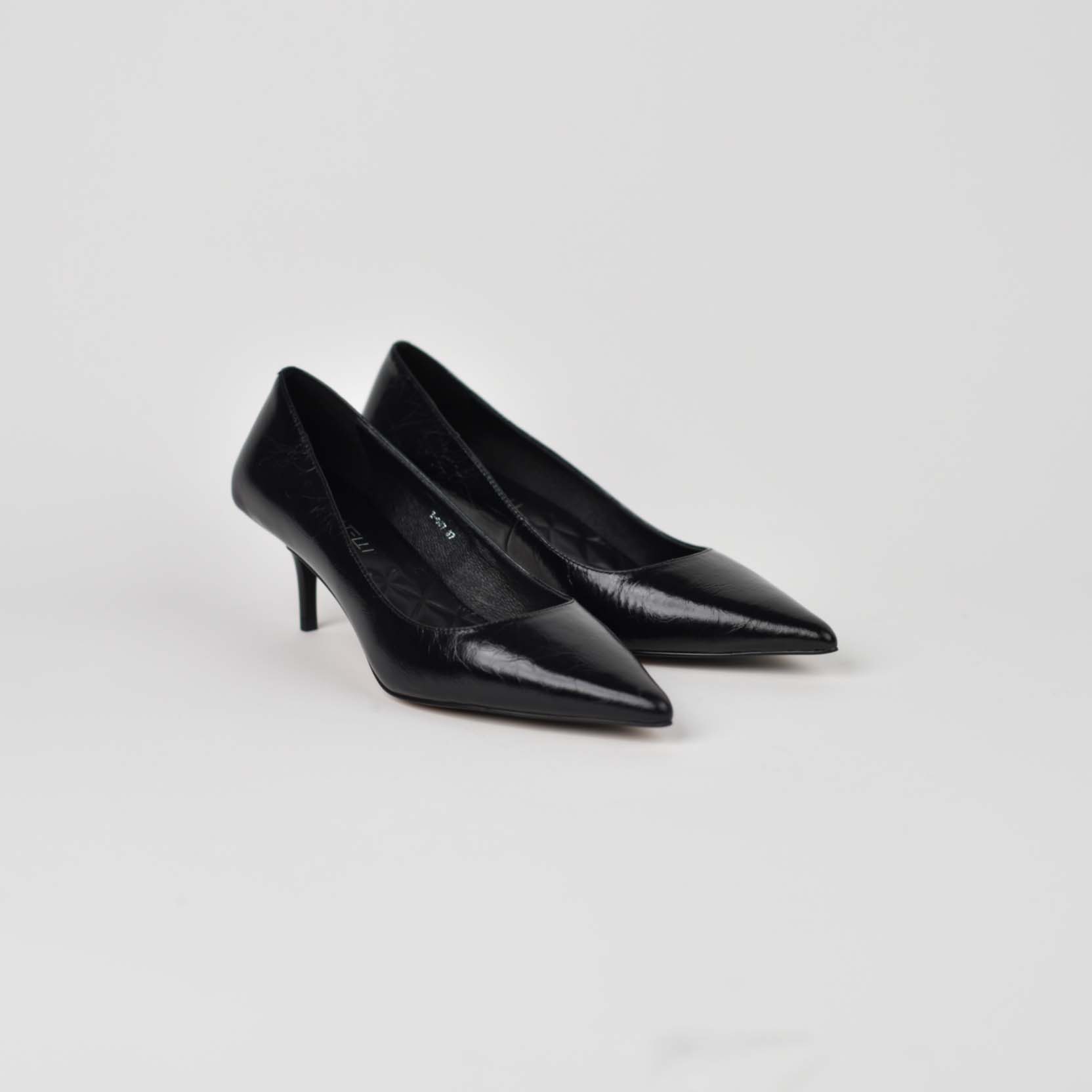 Këpucet elegante me taka janë zgjedhja ideale për një pamje plot hijeshi dhe finesë. Dizajni i tyre modern me majë të mprehtë dhe material me shkëlqim ofron një kombinim perfekt mes stilit klasik dhe tendencave të fundit.