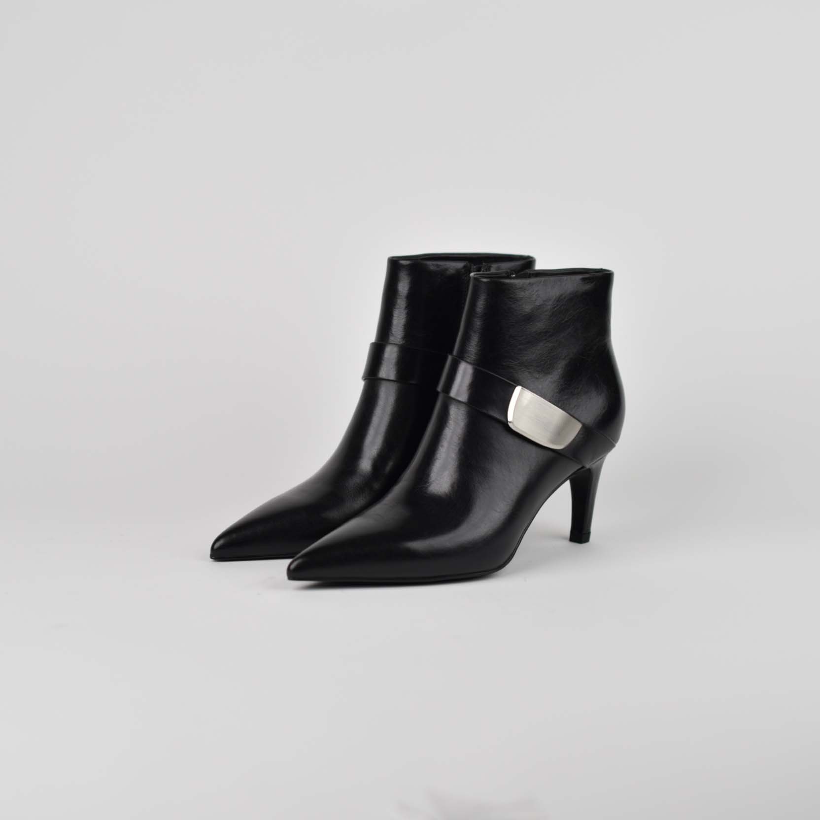 Gjysmë çizme me dizajn modern dhe linja të pastra, të punuara nga materiale cilësore për rehati maksimale. Një zgjedhje praktike dhe elegante që përshtatet lehtësisht me çdo stil veshjeje.