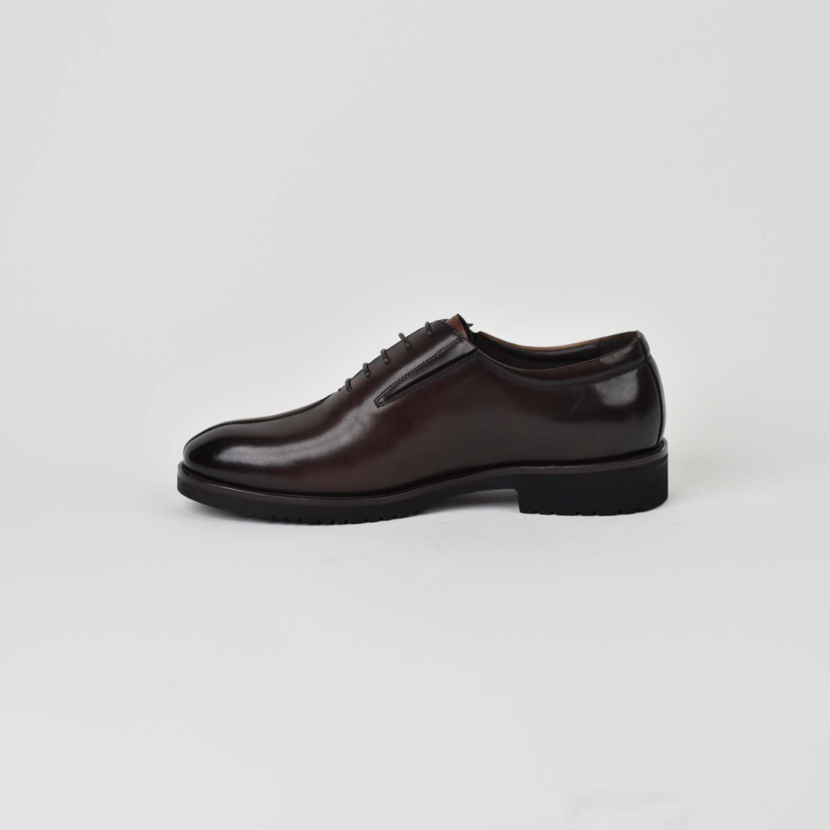 Këto këpucë elegante për meshkuj janë krijuar për ata që kërkojnë një kombinim të përsosmërisë klasike dhe komoditetit modern. Të punuara nga lëkurë natyrale cilësore, ato paraqiten me një ngjyrë kafe të lëmuar me tonalitete më të errëta në pjesën e sipërme, duke krijuar një efekt të rafinuar “two-tone”. Dizajni i tyre i thjeshtë, me lidhëse dhe formë të zgjatur, i jep një pamje profesionale ideale për veshje formale apo biznesi.