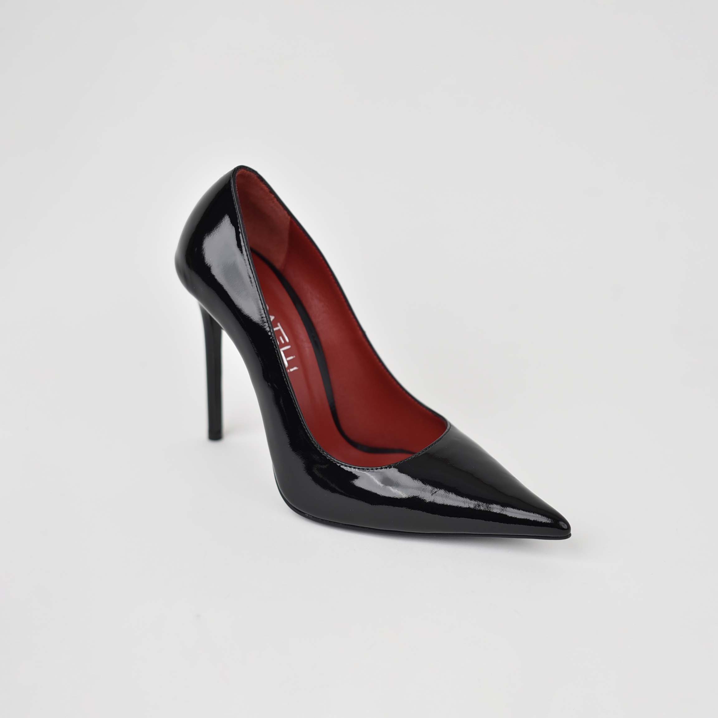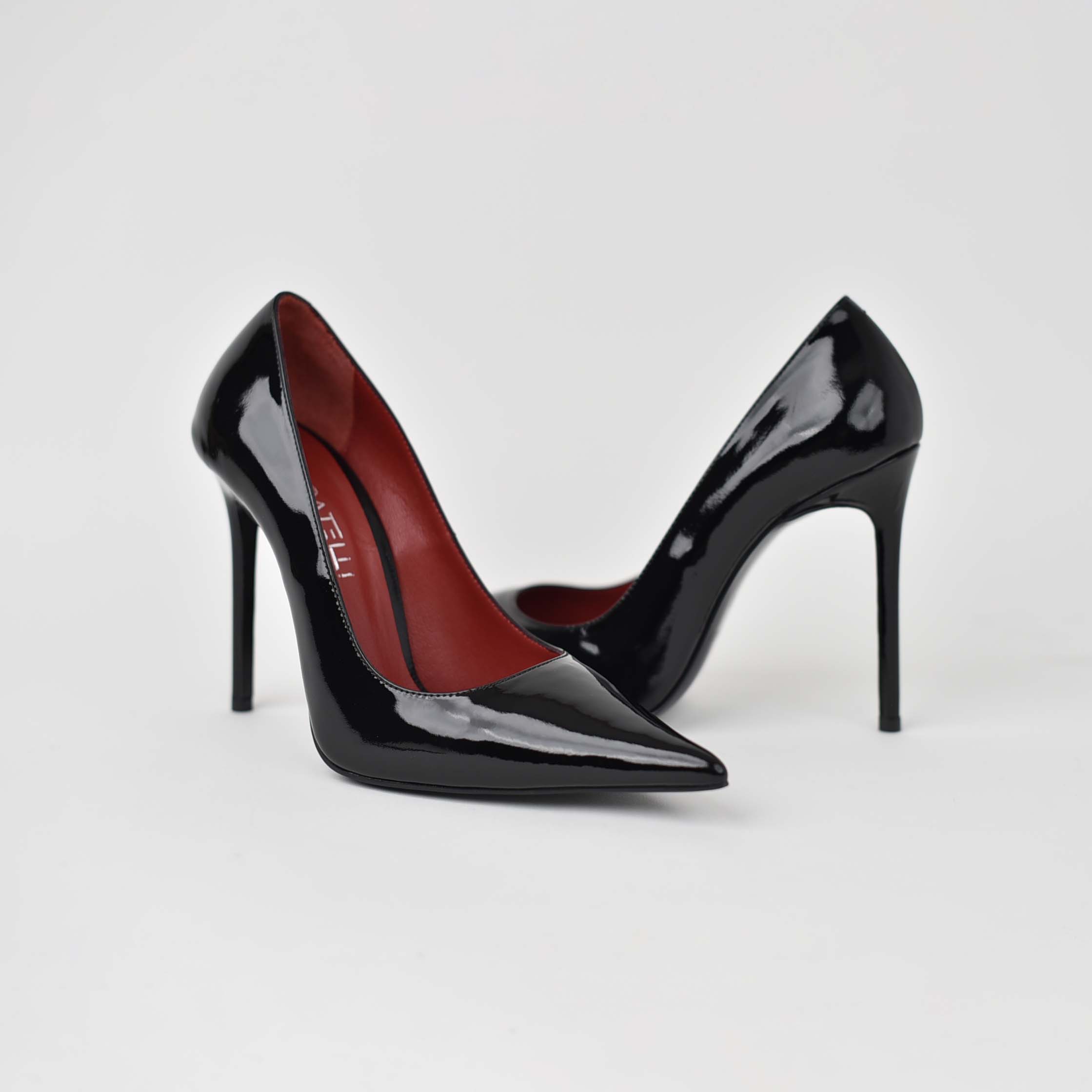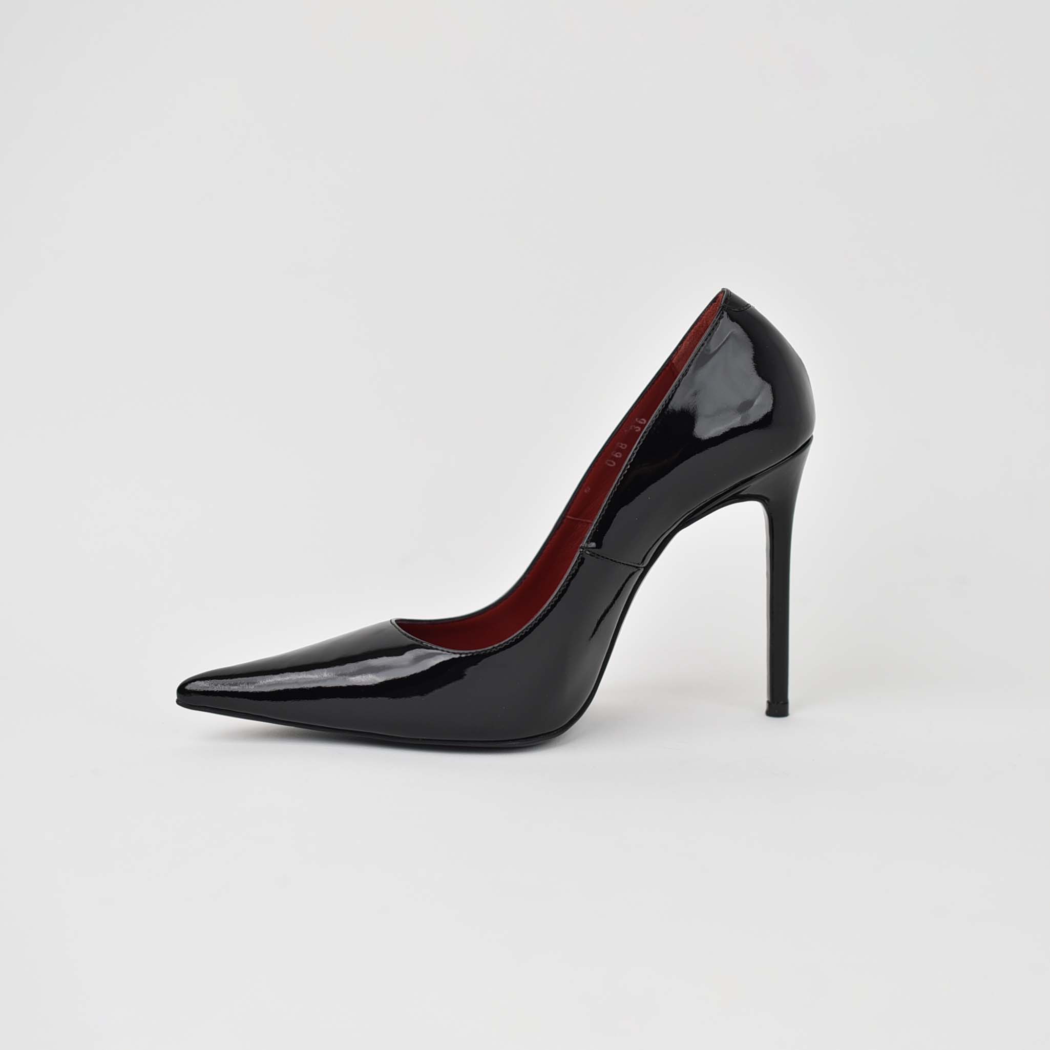 Këto stileto të zeza me shkëlqim ofrojnë elegancë klasike dhe finesë moderne. Me takë të lartë stiletto dhe majë të mprehtë, ato janë zgjedhja ideale për mbrëmje dhe evente të veçanta, duke shtuar stil dhe vetëbesim në çdo hap.